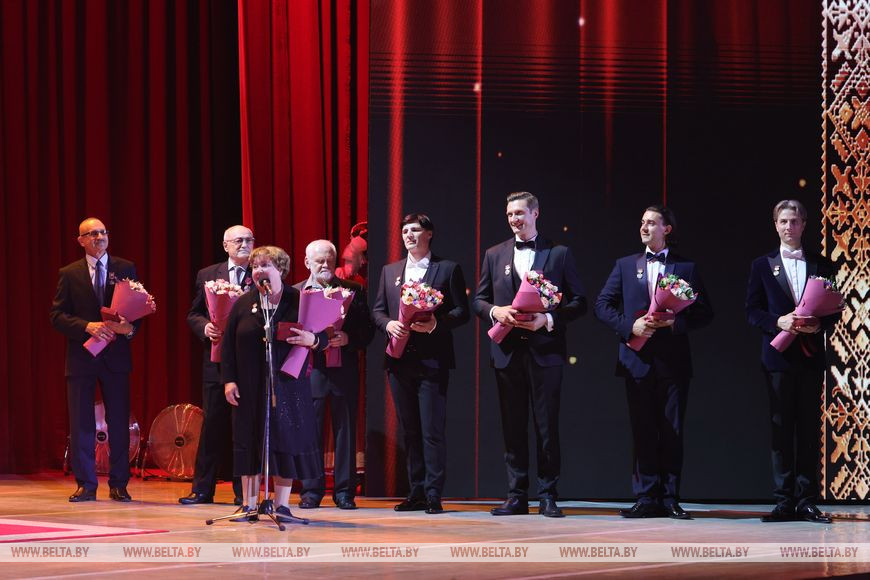 В свою очередь актриса Купаловского театра Тамара Миронова, которой было присвоено почетное звание народного артиста Беларуси, поблагодарила главу государства за поддержку белорусской культуры. "Вы открыли новые страницы в нашем театре. Театре государственном, национальном. Театре имени Янки Купалы. Вы нам поверили, и мы вас не подвели. Я горжусь, что у нас сейчас есть режиссер, молодые артисты, что рождается новый молодой театр. Это прекрасно!" - сказала она.