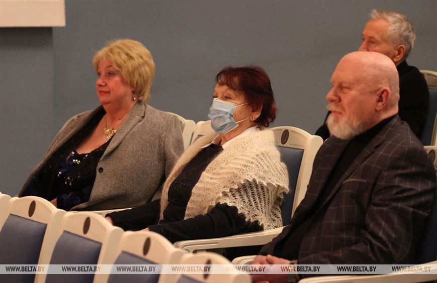 Визит Президента в театр совпал с днем рождения народного артиста Беларуси и СССР, ведущего мастера сцены Геннадия Овсянникова. Накануне свой праздник отметила и артистка Купаловского театра Ольга Нефедова. Глава государства поздравил их с днем рождения, вручив каждому особый подарок.-0-