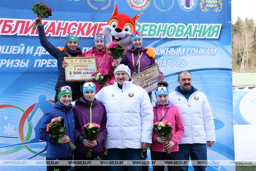 Глава государства вместе с биатлонистами протестировал лыжную трассу и стрельбище, дал старт биатлонной эстафетной гонке среди юношей и девушек 2005-2006 годов рождения. Он также наблюдал за ходом соревнований и принял участие в церемонии награждения победителей и призеров биатлонных эстафетных гонок.