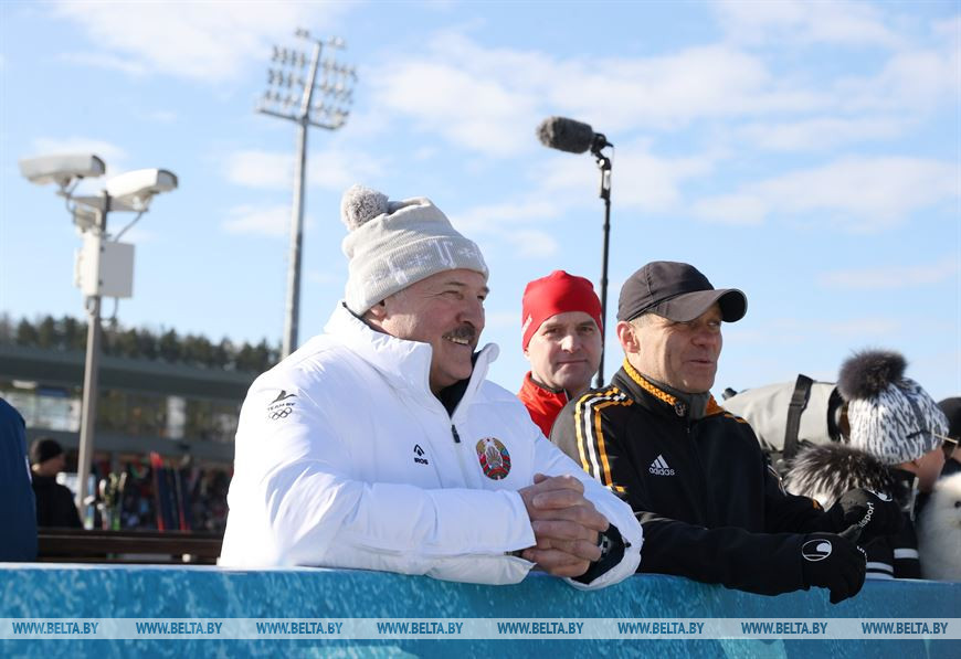 26 февраля, Минск /Корр. БЕЛТА/. Глава государства Александр Лукашенко сегодня посетил республиканские соревнования среди юношей и молодежи по биатлону и лыжным гонкам на призы Президента Беларуси. Соревнования проходят на базе Республиканского центра олимпийской подготовки по зимним видам спорта "Раубичи", передает корреспондент БЕЛТА.