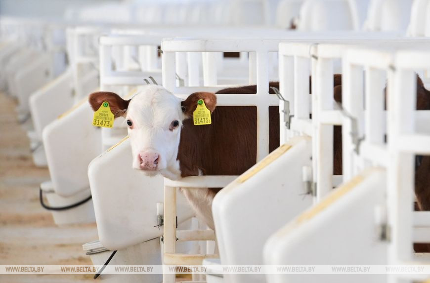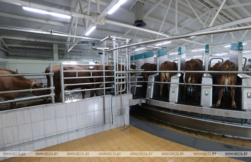 На белорусских фермах немало доильных залов с карусельными доильными установками, но, как заявляют на предприятии, это первая роботизированная. Она рассчитана на 40 коров. Специальный механизм автоматически подгоняет корову к доильному залу. Она заходит в свободное место для доения, компьютер помнит особенности строения вымени каждой. Оборудование делает массаж вымени, обработку, сдаивание первых струек, сортирует молоко по отдельным танкерам.