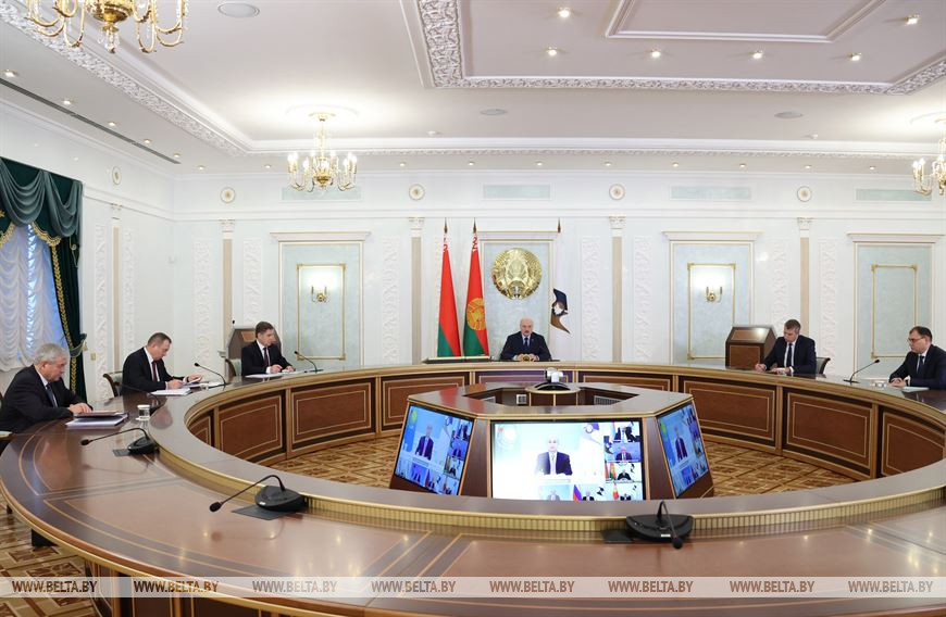 14 октября, Минск /Корр. БЕЛТА/. Президент Беларуси Александр Лукашенко принял участие в заседании Высшего Евразийского экономического совета (ВЕЭС). Мероприятие проходило в режиме видеоконференции, передает корреспондент БЕЛТА.