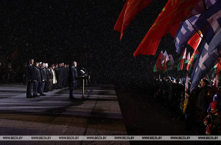 21 марта, Минск /Корр. БЕЛТА/. Президент Беларуси Александр Лукашенко принял участие в республиканском митинге-реквиеме "Лампада памяти", приуроченном к 78-й годовщине хатынской трагедии, передает корреспондент БЕЛТА.