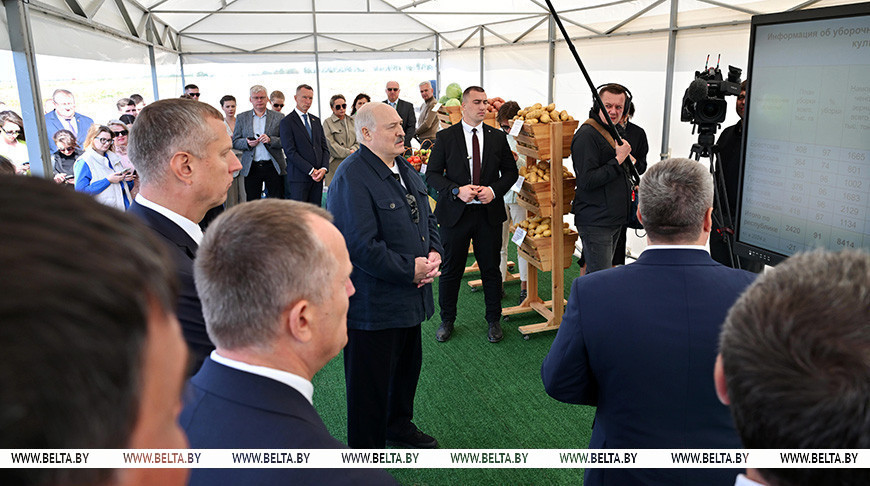 28 августа, Кировский район /Корр. БЕЛТА/. Президент Беларуси Александр Лукашенко во время рабочей поездки в Могилевскую область рассказал, что, направляясь с визитом в Китай, возьмет с собой несколько мешочков картофеля, чтобы передать их в подарок зарубежным лидерам, передает корреспондент БЕЛТА.