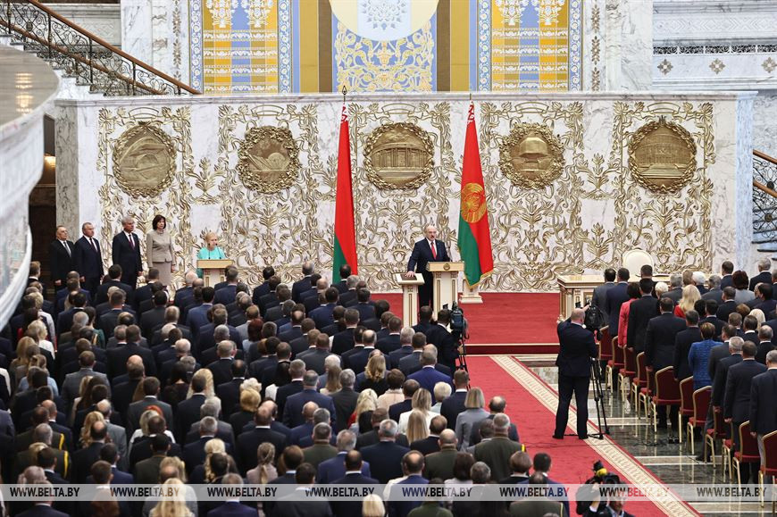 23 сентября, Минск /Корр. БЕЛТА/. Социальная политика останется визитной карточкой белорусского пути при любых обстоятельствах и в любых условиях. Об этом Президент Беларуси Александр Лукашенко заявил сегодня во время торжественной церемонии инаугурации во Дворце Независимости, передает корреспондент БЕЛТА.