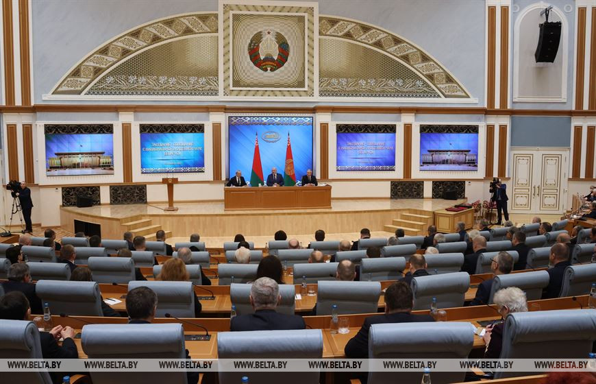 "Так сложилось исторически: наши успехи, естественно, не в радость нашим конкурентам, прежде всего геополитическим. Наука - тоже сфера конкуренции. Наши достижения всегда раздражали и провоцировали так называемый коллективный Запад на неадекватные по отношению к Беларуси поведение и действия, - заявил глава государства. - Однако вопреки санкциям, с которыми мы живем и развиваемся в это время, мы многого достигли. Теперь ситуация усложняется и пандемией ковида, новым витком экономического, политического шантажа, нагнетаемой военной истерии на белорусских границах".