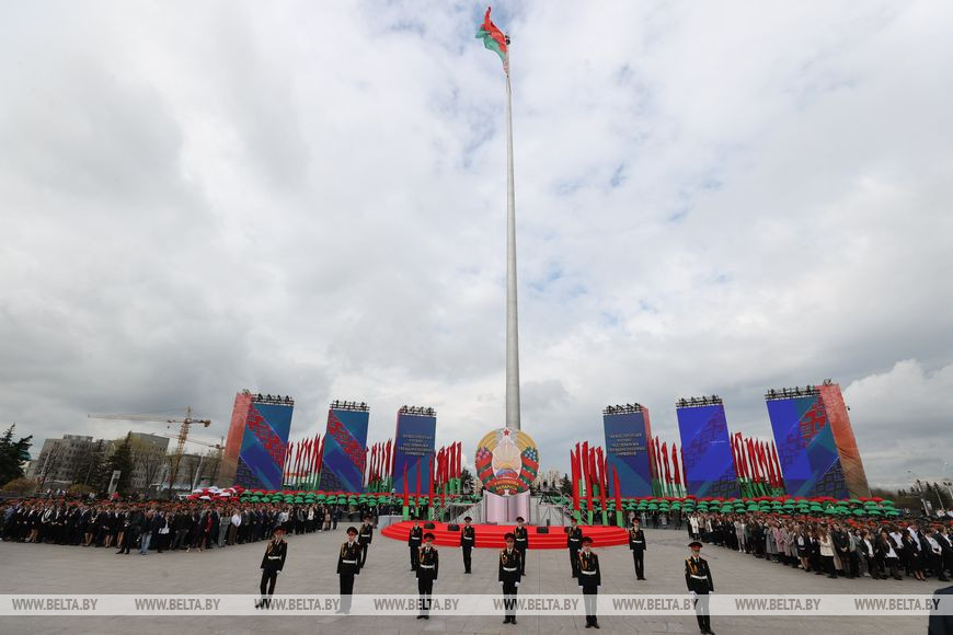 8 мая, Минск /Корр. БЕЛТА/. Президент Беларуси Александр Лукашенко в Минске принимает участие в торжественном ритуале чествования государственных символов. Мероприятие проходит на площади Государственного флага, сообщает БЕЛТА.