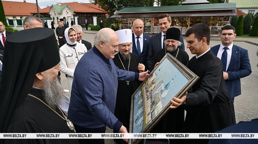 19 сентября, Жировичи /Корр. БЕЛТА/. Президенту Беларуси Александру Лукашенко по случаю празднования 555-летия явления Жировичской иконы Пресвятой Богородицы и 505-летия основания Свято-Успенского Жировичского мужского монастыря подарили картину "Праздник в Жировичах", передает корреспондент БЕЛТА.