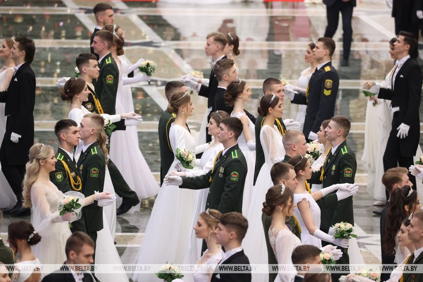 "Дорогие друзья! Сегодня Дворец Независимости принадлежит вам. Не раз говорил и повторю, что он открыт для всех, кто стремится честно и добросовестно служить своему Отечеству и своему народу", - обратился Александр Лукашенко к участникам бала.
