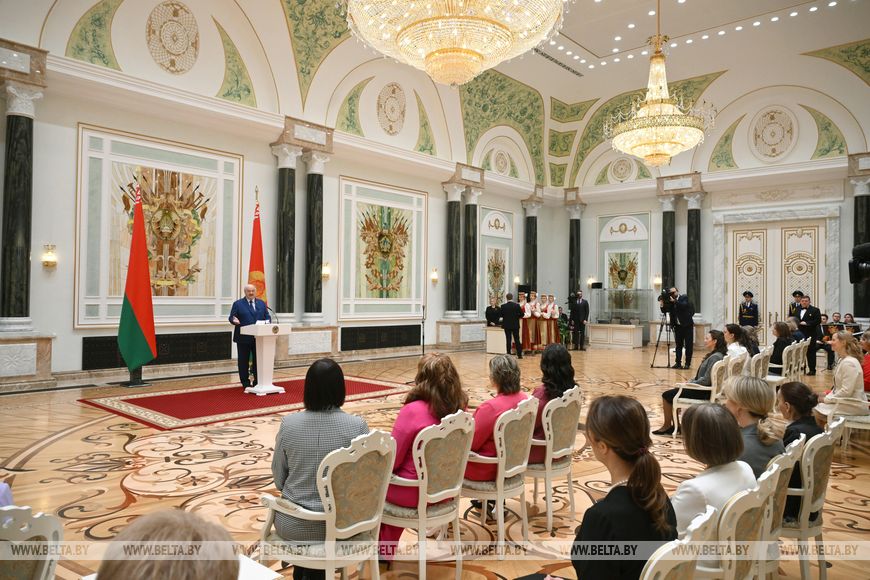 "Вы олицетворяете собой нашу страну - нашу любимую Беларусь. Красивую, талантливую, умную, устремленную в светлое будущее, где незыблемы нормальные, традиционные отношения, особенно семейные. А дети для нас - это вообще святое", - заявил Александр Лукашенко.