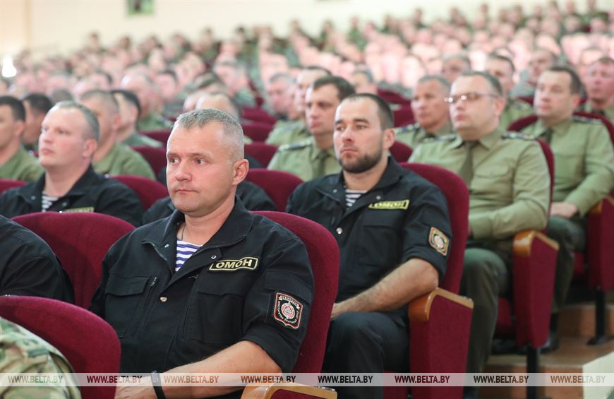 28 июля, Минск /Владимир Матвеев - БЕЛТА/. Президент Беларуси Александр Лукашенко заявил о дальнейшей поддержке военнослужащих со стороны государства сегодня на встрече с руководством и личным составом ведомств системы обеспечения национальной безопасности при посещении войсковой части 3214 внутренних войск МВД, передает корреспондент БЕЛТА.