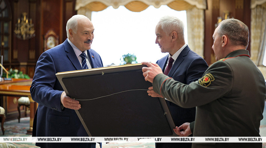 Андрей Белоусов продолжил: "Он очень долго называл всякие теплые слова, которые я вам должен передать. Но суть состоит в том, что, конечно, у нас не просто дружба. Мы уже настолько тесно связаны друг с другом, что уже понимаем друг друга вообще практически без слов"."Спасибо. Это мы разместим. Очень хороший замысел. Сделали все награды", - поблагодарил за подарок Александр Лукашенко.