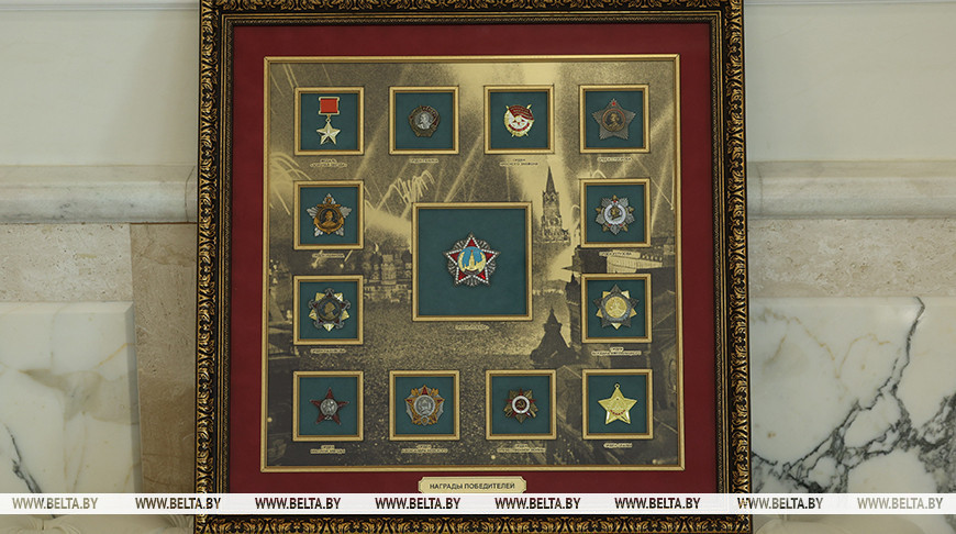 16 мая, Минск /Корр. БЕЛТА/. Министр обороны России Андрей Белоусов подарил Президенту Беларуси Александру Лукашенко набор советских наград, которые вручались за боевые заслуги в годы Великой Отечественной войны, передает корреспондент БЕЛТА.