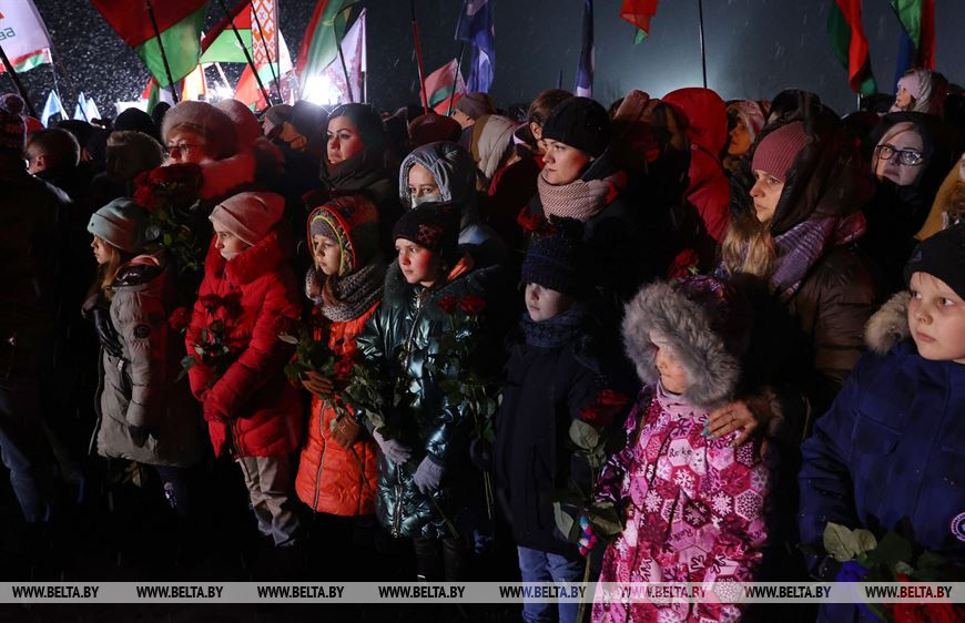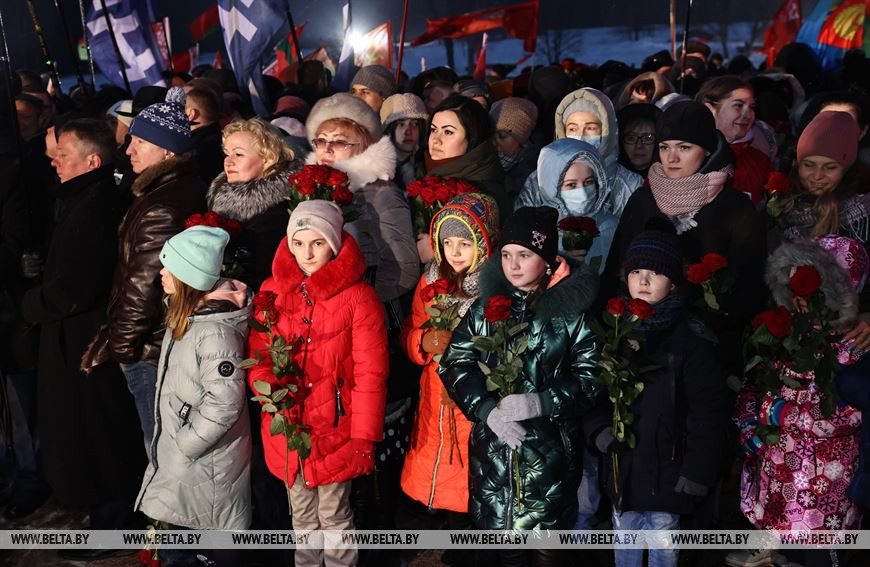 Трагедия Хатыни и тысяч деревень и городов с такой же судьбой - это неутихающая боль в сердце белорусов, всех советских людей. Сегодня мы, представители разных поколений, религиозных конфессий, философских и политических взглядов, собрались вместе, чтобы почтить память невинных и защитить правду о той войне.