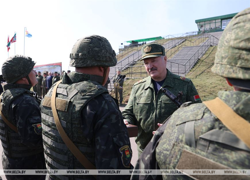 12 сентября, Барановичский район /Корр. БЕЛТА/. Президент Беларуси Александр Лукашенко поручил наградить участников совместного стратегического учения вооруженных сил Беларуси и России "Запад-2021". Соответствующий приказ глава государства озвучил сегодня, принимая участие в учении на Обуз-Лесновском полигоне, передает корреспондент БЕЛТА.