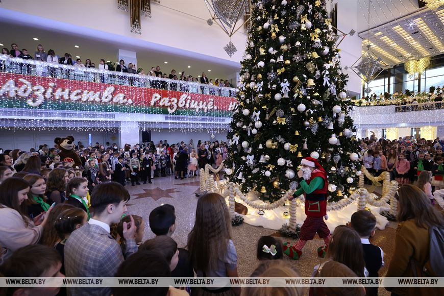 29 декабря, Минск /Корр. БЕЛТА/. Глава государства Александр Лукашенко 29 декабря принял участие в благотворительном празднике в рамках акции "Наши дети". На главную елку страны Президент пришел с подарками для Деда Мороза и Снегурочки, передает корреспондент БЕЛТА.