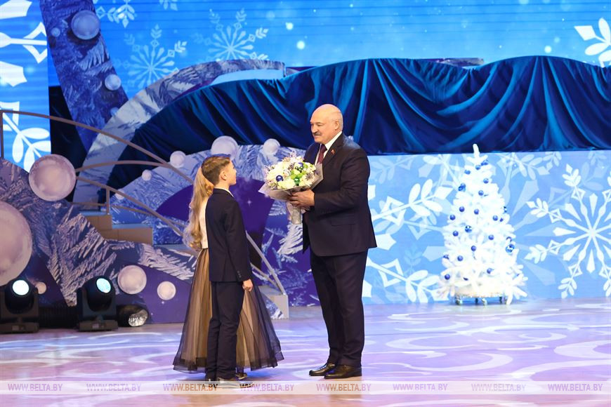 "Поясняю: все мы под Новый год, а больше всего вы, просите чего-то у Деда Мороза. "Подарков дай, дай, Дед Мороз" и прочее. А Деду Морозу ничего? Поэтому я решил, что будет правильно, если мы сегодня от моего и от вашего имени поздравим нашего Деда Мороза и Снегурочку и вручим им подарки", - сказал Александр Лукашенко.