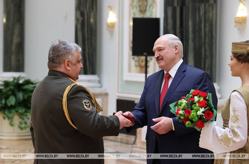 Глава государства обратил внимание, что традиционная церемония вручения госнаград и генеральских погон имеет особый смысл в Год народного единства. "Как бы пафосно это ни звучало, для меня вы представляете передовой отряд армии добра, созидания, людей творческих и самое главное - нацеленных на результат. И это очень важно. Ведь нация, которая заботится о завтрашнем дне, может сплотиться и успешно развиваться только на позитивных идеях и делах. Каждый из вас работает на Отечество и народ. Своим трудом вы делаете нашу страну сильнее и краше ", - подчеркнул Александр Лукашенко.