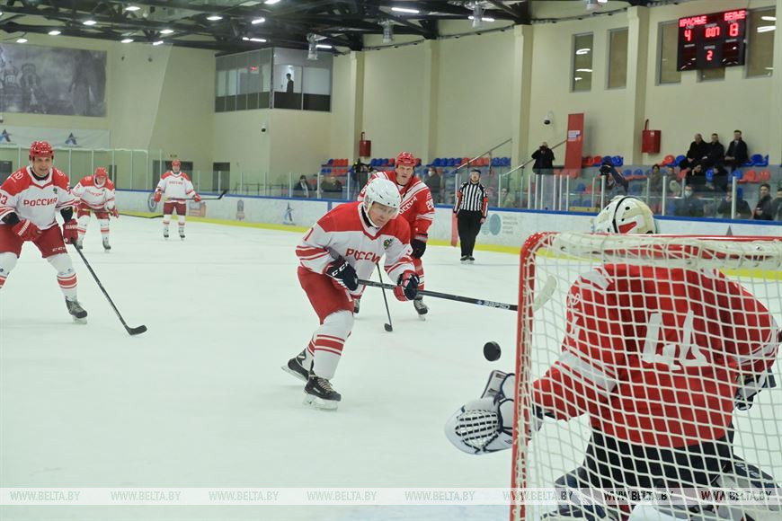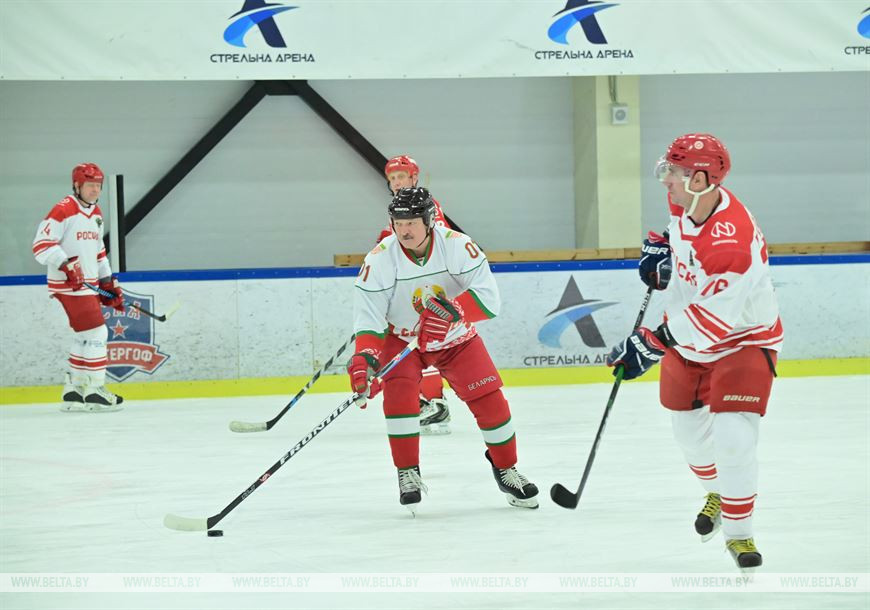 После достаточно продолжительных переговоров лидеры Беларуси и России продолжили неформальное общение, но уже в хоккейной экипировке. Они встретились на площадке питерского комплекса "Стрельна Арена", а к ним присоединились известные советские и российские хоккеисты Вячеслав Фетисов, Валерий Каменский, Алексей Касатонов, Павел Буре, Сергей Федоров, Илья Ковальчук, Алексей Жамнов и другие.