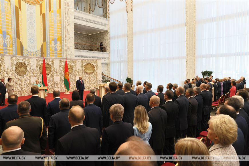 Во время церемонии Александр Лукашенко заявил, что вступает в должность Президента с чувством гордости за белорусов, "которые с честью прошли испытания на прочность, прежде всего, своих убеждений".