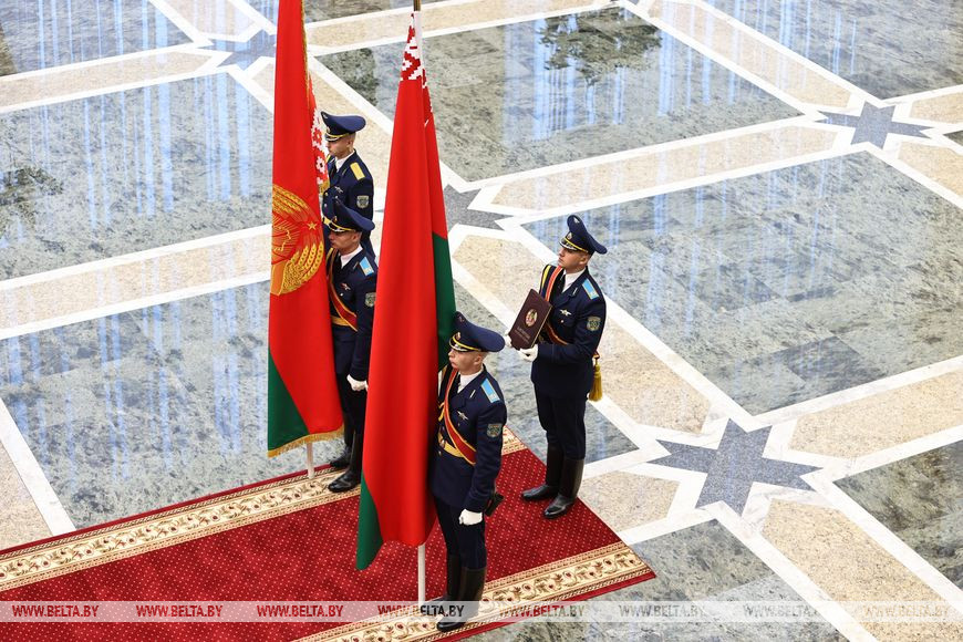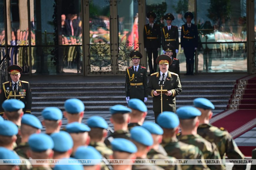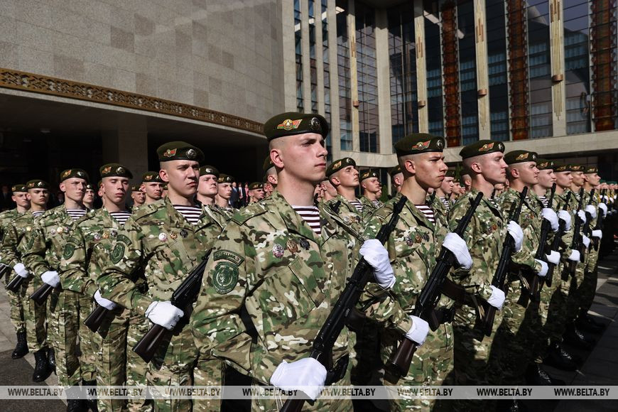 После инаугурации главы государства белорусские военнослужащие принесли клятву на верность народу и Президенту. В церемонии приняли участие представители различных родов войск. Они поклялись перед белорусским народом и Главнокомандующим, что всегда готовы надежно защитить суверенитет и территориальную целостность Родины.