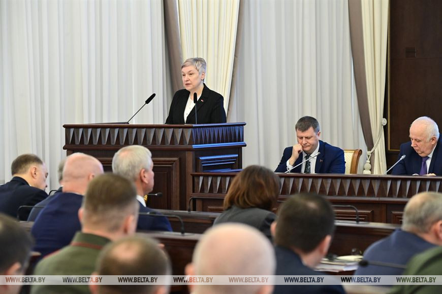 С докладом выступила председатель Национального статистического комитета Инна Медведева. Она проинформировала о работе экономики в 2022 году и итоговых показателях, а также поделилась статисткой по актуальной проблематике.