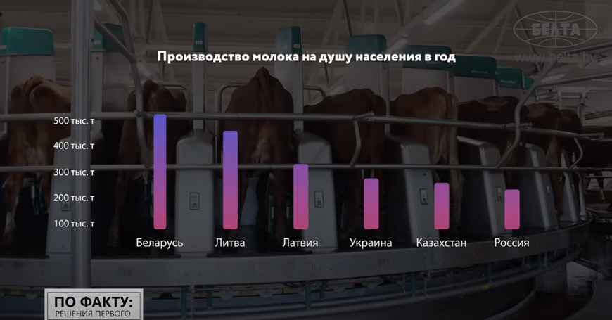 "Пейте, дети, молоко - будете здоровы!" Вы наверняка помните эту забавную песенку из милого советского мультика. А вы знали, что Беларусь входит в пятерку крупнейших экспортеров молочной продукции? Белорусскую молочку сегодня можно найти на прилавках почти в 50 странах мира. Но так было не всегда. Как в Беларуси развивалась молочная промышленность? Какой белорусский товар подделывают чаще всего? Где в стране самые продуктивные буренки и за что Александр Лукашенко хотел поставить памятник корове? Отвечаем на эти вопросы в YouTube-проекте БЕЛТА "По факту: решения Первого".
