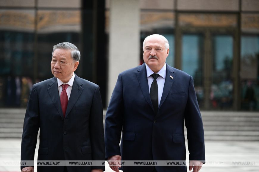Переговоры во Дворце Независимости прошли в узком и расширенном составах. На них обсуждались развитие стратегического сотрудничества Беларуси и Вьетнама по ключевым направлениям в экономике, политике и гуманитарной сфере.