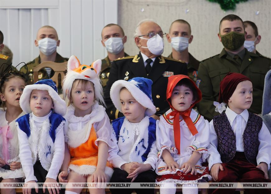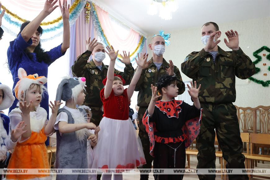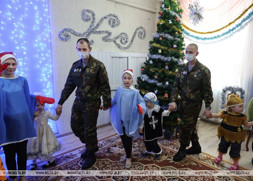 Сегодня к ним в гости пришли военнослужащие 103-й Витебской отдельной гвардейской воздушно-десантной бригады, представители региональных организаций Белорусского союза офицеров, Белорусского союза женщин и сотрудники милиции. Они поздравили воспитанников детского дома с новогодними праздниками, вручили сладкие подарки, самокаты и денежный сертификат.