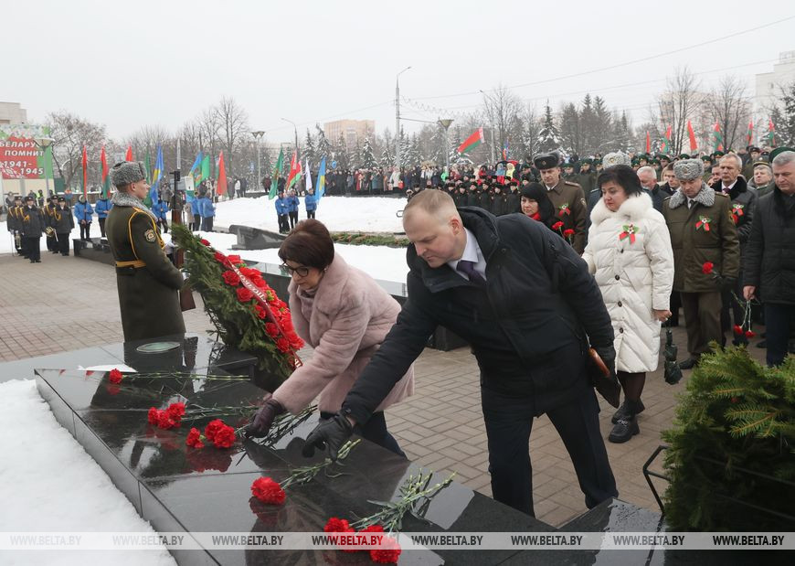 25 ноября, Гомель /Корр. БЕЛТА/. Наше поколение должно сохранить историческую память о великом подвиге советских воинов и героях тыла. На этом сделала акцент заместитель председателя Гомельского горисполкома Елена Алексина на торжественном митинге на Аллее Героев в честь 79-й годовщины освобождения Гомеля от немецко-фашистских захватчиков, передает корреспондент БЕЛТА.