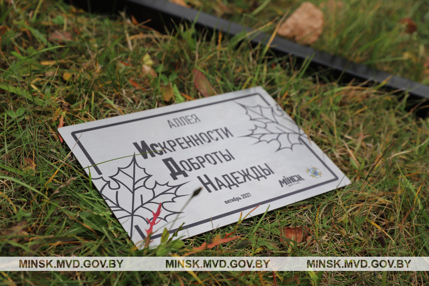 22 октября, Минск /Корр. БЕЛТА/. Сегодня столичные милиционеры, представители БРСМ и подростки, с которыми проводится индивидуальная воспитательная работа, высадили кленовую аллею Искренности, Доброты, Надежды. Мероприятие проходило на пересечении улиц Плеханова и Якубова, сообщили БЕЛТА в ГУВД Мингорисполкома.