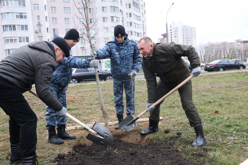 В озеленении микрорайона Лошица поучаствовали министр внутренних дел Иван Кубраков, помощник Президента - инспектор по городу Минску Александр Барсуков, глава администрации Ленинского района столицы Роман Мельник, руководители и ветераны милицейского ведомства, курсанты Академии МВД и Специализированного лицея МВД.