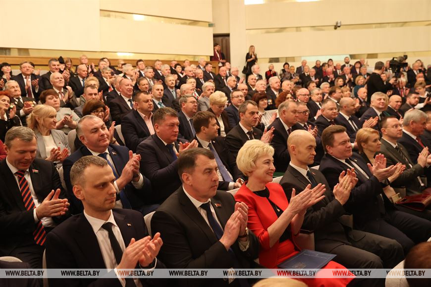 Владимир Андрейченко поздравил присутствовавших на церемонии с 85-летием региона, в развитие которого он тоже внес большой вклад, когда был председателем Витебского облисполкома с 1994 по 2008 год. "Это важное событие для всех - и ветеранов, и молодежи, тех, кто внес частичку своей души, своего сердца в нашу малую родину, чтобы она расцветала и развивалась. Витебщина прошла большой путь - это и суровые годы Великой Отечественной войны, и восстановление области из пепла. Сегодня это высокоразвитый регион. Мы, витебчане, гордимся тем, что у нас уникальная природа, гордимся своими традициями, именами просветителей, художников, поэтов. Определяющее значение Витебщина вносит в развитие экономики. Это такие гиганты, как "Нафтан", Оршанский льнокомбинат, Лукомльская ГРЭС, наши обувные предприятия - все это бренды Витебской области и страны. Это и сельхозпредприятия, такие как "Агрокомбинат "Юбилейный", "Маяк Браславский" и многие другие. Витебской области большое внимание уделяет Президент Беларуси, потому что он наш земляк. И благодаря вашему труду, дорогие ветераны, молодежь, передовики производства, наша область развивается и становится краше и краше. Историю делают люди. Хочу от имени руководства страны сказать вам огромное спасибо за ваши труд, старания, передовой опыт. Передовой опыт - это основа для роста, реализации новых программ, проектов. Вместе с тем передовой опыт говорит, что у нас есть еще много возможностей для реализации, а потенциал у Витебщины большой - как в сельском хозяйстве, так и в области промышленного производства. В Год мира и созидания я хочу поблагодарить вас и пожелать в это непростое время, чтобы мы были едины, а также мира, здоровья, благополучия каждому и успехов во имя процветания Беларуси", - подчеркнул председатель Палаты представителей.