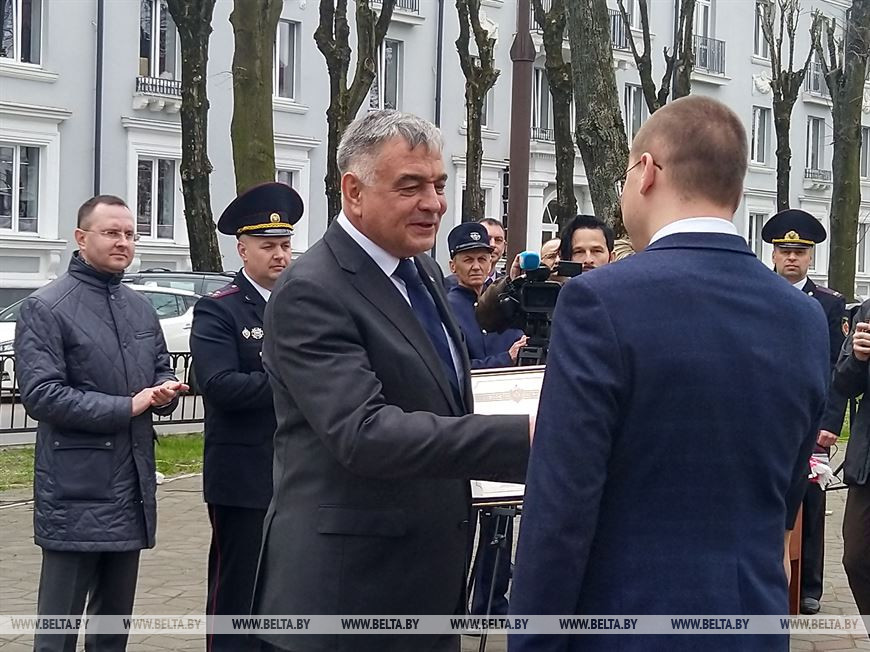 Церемония завершилась награждением сотрудников и работников управления ГКСЭ по Брестской области и межрайонных отделов. В церемонии также приняли участие ветераны службы, учащиеся профильного класса средней школы №5 Бреста и жители города.-0-