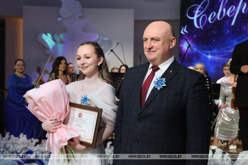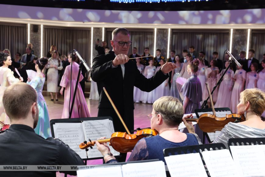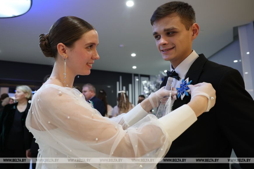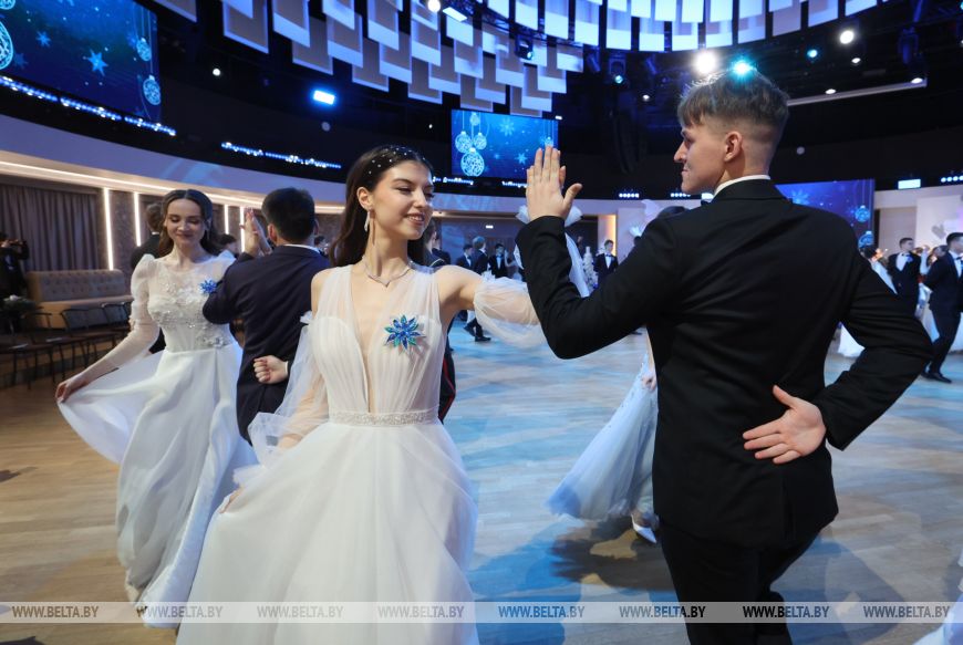 Дарья подчеркнула, что 2025 год для них ознаменовался еще очень многими приятными событиями, пусть и не такого масштаба, так что у будущих медиков будет, что вспомнить. "Мы очень долго готовились к балу, репетировали в университете по несколько часов, потом и дома тоже тренировались. Даниле, кстати, труднее всего дался вальс, но я думаю, что у нас вместе получится станцевать его красиво. Я очень волнуюсь. Быть здесь - это не просто мечта, а какое-то волшебство, как будто для нас открыли дверь в мир, где все желания сбываются", - поделилась эмоциями девушка.Всего более 40 пар студентов со всего региона собрались в Концертом зале "Витебск" и закружились в танце под звуки живого оркестра. Поздравить ребят прибыл глава депутатского корпуса Витебщины Дмитрий Демидов. "Здесь чувствуется предвкушение чуда и ожидание волшебства. Глядя на вас, я ощущаю, как мое сердце переполняют самые теплые и добрые эмоции, ведь сегодняшний новогодний бал - в вашу честь. Вы заслужили это своим талантом, трудолюбием, высокими достижениями на благо нашей Витебщины. Мы с радостью и гордостью смотрим на вас, связываем с вами наши лучшие надежды по развитию наших районов, славного города Витебска, страны. Вы сделали уже первые шаги, добились высоких результатов, но впереди у вас много славных дел, потому что своими способностями вы показываете глубокую любовь и к малой родине, и к своей Беларуси. Я желаю вам никогда не останавливаться на достигнутом", - высказал теплые пожелания председатель областного Совета депутатов.-0-