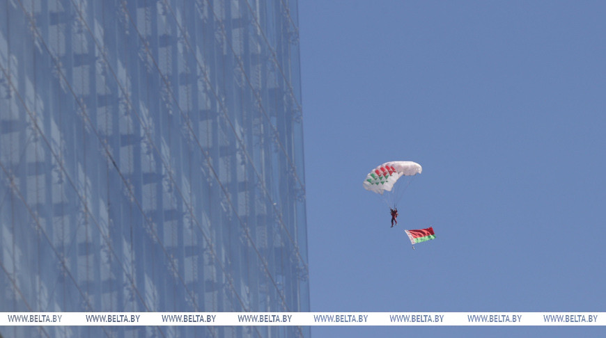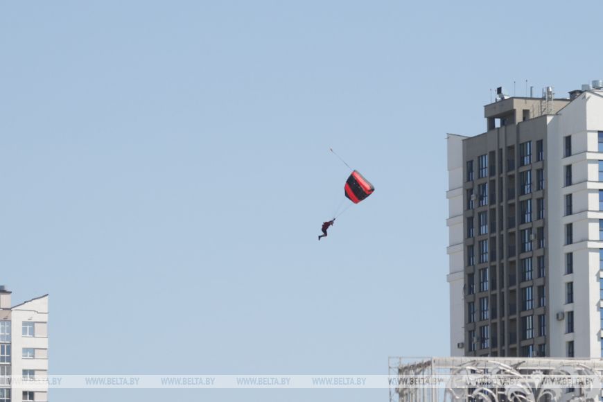 Кульминацией праздничного мероприятия стало воздушное шоу. Авиаторы ДОСААФ продемонстрировали в воздухе самолеты и вертолеты общества, а парашютисты совершили прыжки на площадку возле Национальной библиотеки.
