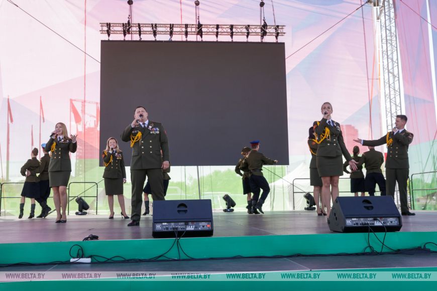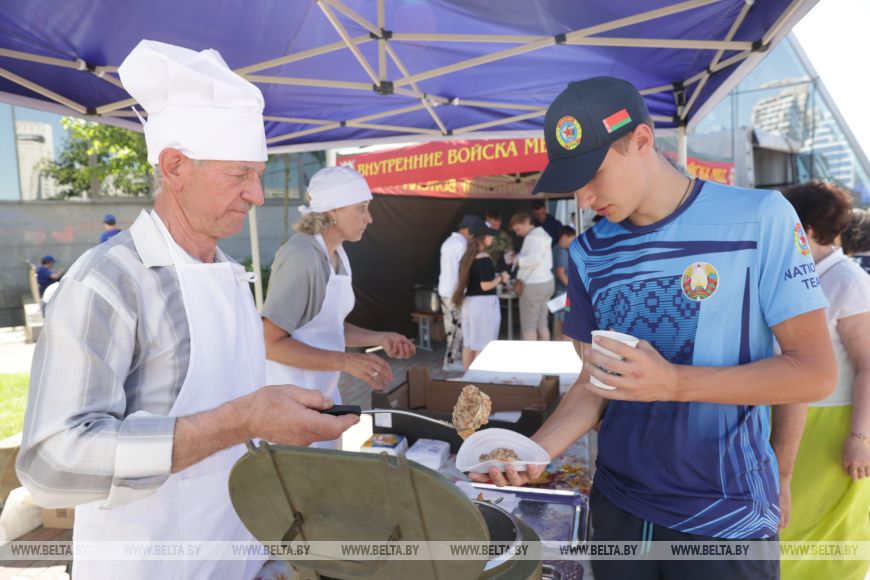 Праздничную атмосферу помогали создавать артисты, которые со сцены исполнили знакомые всем песни. Осмотрев локации, посетители мероприятия могли отведать солдатской каши, которую приготовили военнослужащие внутренних войск МВД.