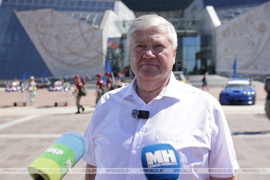 "Возле Национальной библиотеки были показаны возможности ДОСААФ. Всего общество культивирует 22 вида спорта, при ДОСААФ находятся 8 национальных команд. Минчане и гости столицы могли наблюдать в небе нашу авиацию. Мы представили различные типы самолетов, на которых проходят подготовку все наши военные летчики, а с недавних пор - и гражданские пилоты", - рассказал председатель центрального совета ДОСААФ Андрей Некрашевич.