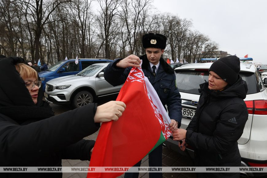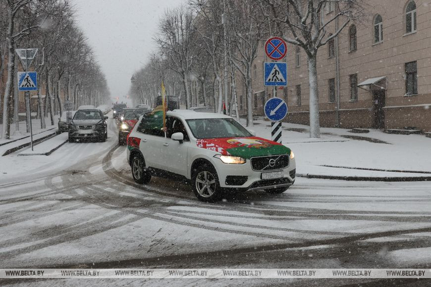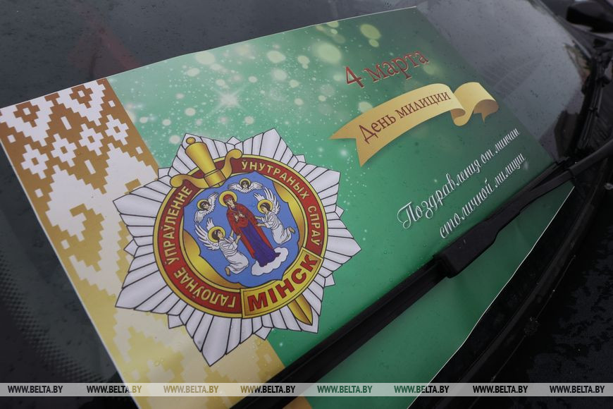 По центральным улицам города проехала колонна из 50 машин с белорусскими флагами и символикой ко Дню милиции. Стартовал автопробег у Дома офицеров на ул. Красноармейской. Колонна двигалась по улицам Красноармейской, Кирова, Ленина до первой точки - ГУВД Мингорисполкома, где девушки в национальных костюмах, лидеры городских общественных организаций передали каравай и поздравили тех, кто в праздничный день несет службу. После этого колонна машин отправилась по Немиге, Городскому Валу, проспекту Независимости до Коммунистической.