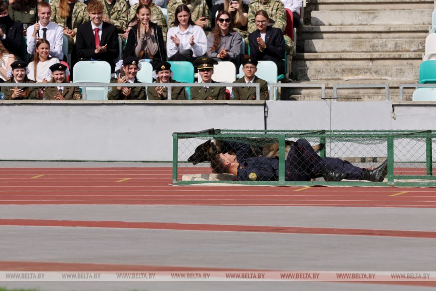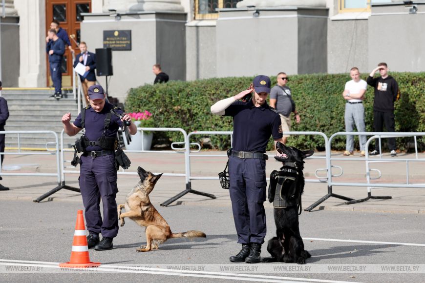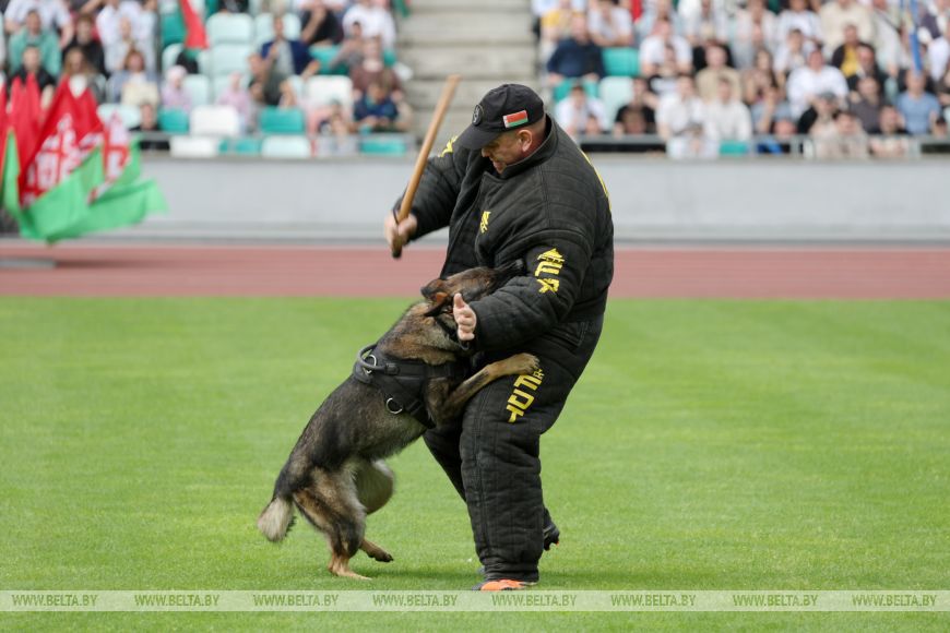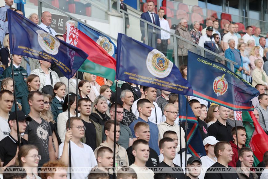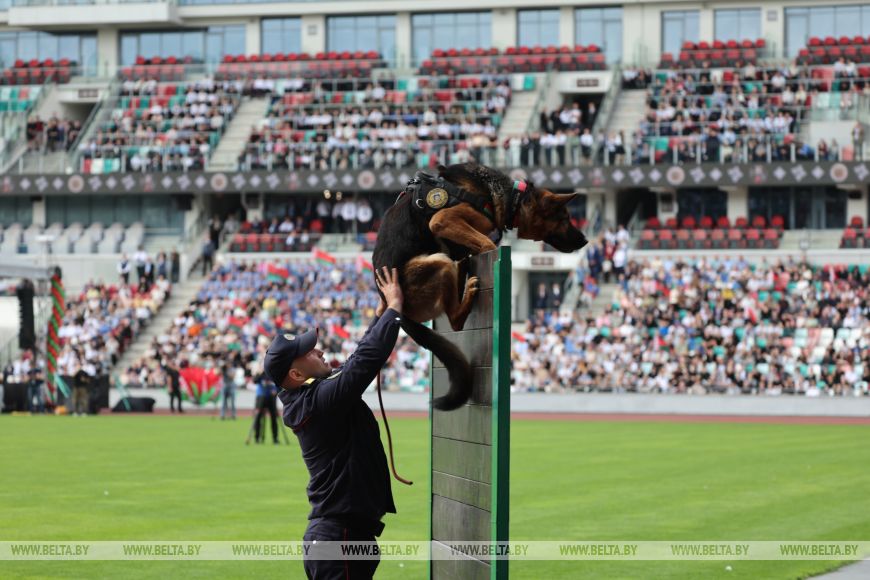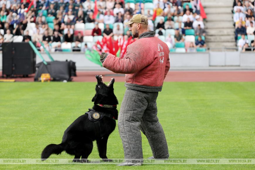 На стадионе еще до начала торжественного открытия настроение гостям поднимали песнями. Своим исполнением порадовала и белорусская певица Жанет. Сотни зрителей пришли с улыбками поддержать своих коллег. Учащиеся патриотических классов рады были увидеть профессионалов в работе. Наверняка кто-то из них в будущем также станет сотрудником Департамента охраны, а может, даже кинологом.