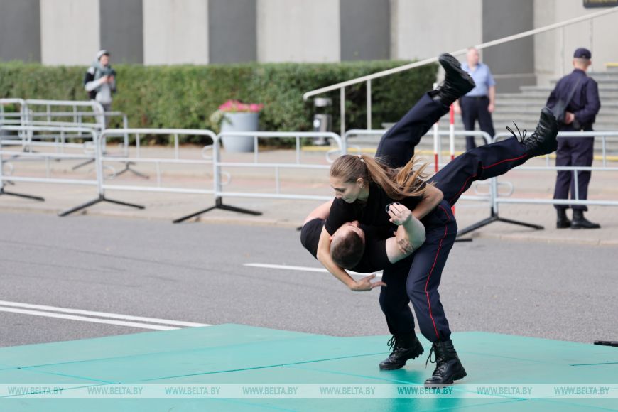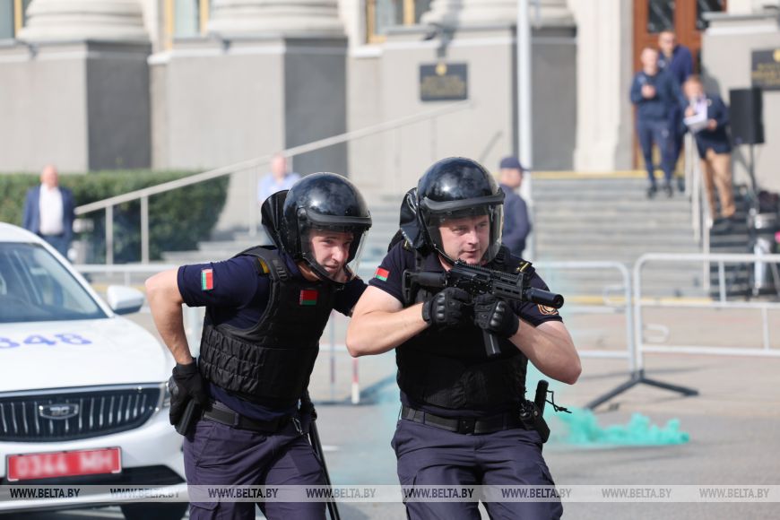 Масштабность конкурса в этом году по-настоящему впечатляет. Он впервые проходит на разных площадках в Минске. Многие испытания проводятся в РЦОП "Стайки", а экзамен по скоростному маневрированию на служебном транспорте - на стадионе "Заря" ДОСААФ в Минском районе. К слову, команда победителей уедет домой на новом служебном автомобиле.