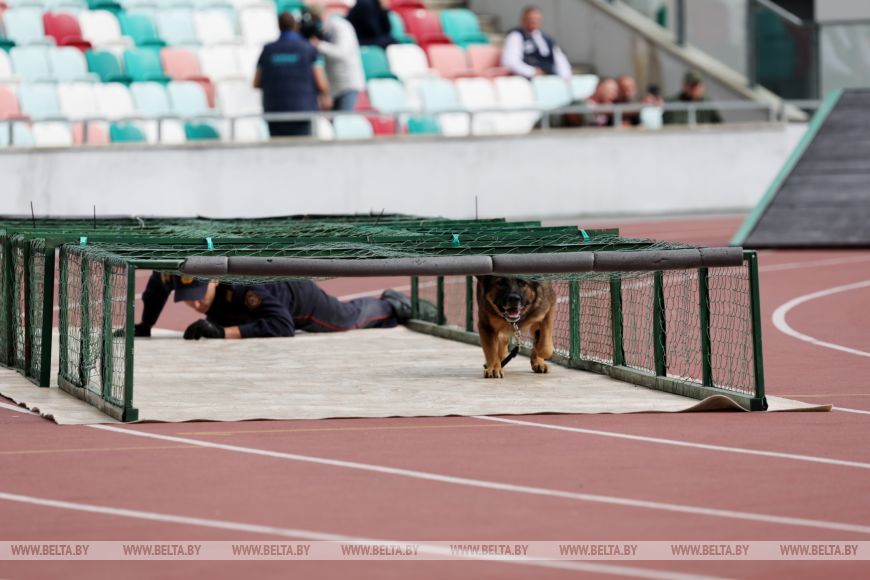 К слову, о собаках. Они одними из первых оценили масштабность полосы на Национальном олимпийском стадионе. Кинологи "выгуливали" своих подопечных, чтобы те привыкли к полю и шуму зрителей. А все для того, чтобы в самый нужный момент четвероногие сотрудники ДО не растерялись и выполнили указания кинологов на все 100%.