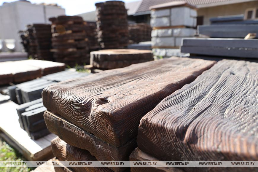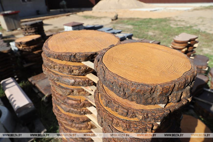 Изделия с почерком предпринимателя и в самом деле оригинальные. Плитка для дорожек в виде древесных спилов или бревен, маленьких или гигантских ножек, плиты разных форм для отделки ступеней, заготовки для забора - уже сейчас видно, в каком направлении развивается дело.