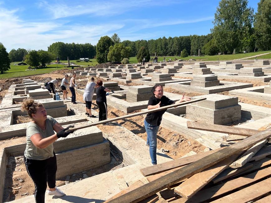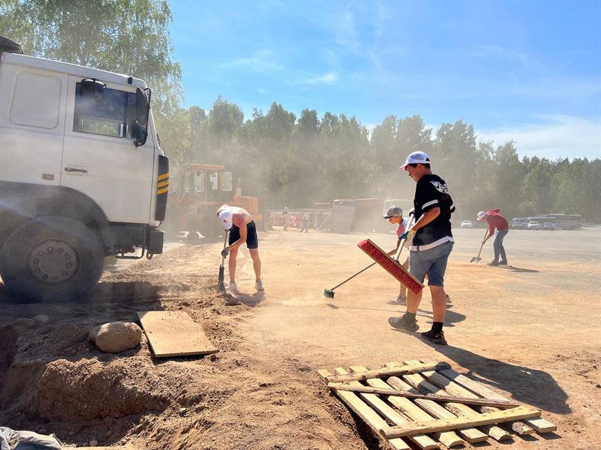 Перед началом работ по благоустройству делегация из Бобруйска возложила цветы к мемориалу и почтила минутой молчания память тех, кто погиб в годы Великой Отечественной войны. После этого бобруйчане приступили к облагораживанию территории будущего музея и мемориального комплекса "Кладбище деревень".