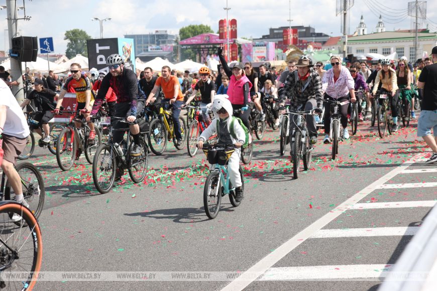 Тысячи велолюбителей выстраиваются перед ТРЦ Galleria Minsk для участия в масштабном велозаезде, который пройдет по маршруту Дворец спорта - "Минск-Арена" - Дворец спорта. "Международный велокарнавал "Viva Ровар" состоит из трех частей. Первая - это уже полюбившиеся детско-юношеские соревнования "Першы ровар". В состязании участвуют более 800 ребят в возрасте от 2 с половиной до 12 лет. Основная часть - велопарад. Третья составляющая - большая конкурсная и развлекательная программа", - отметил директор велосипедного клуба "Минск" Алексей Иванов.