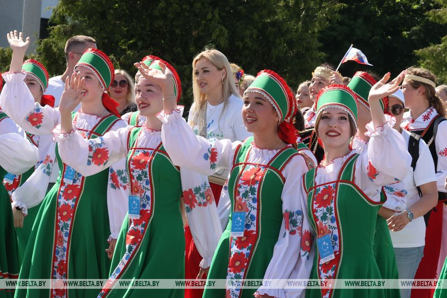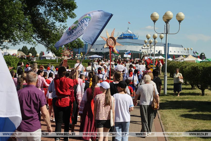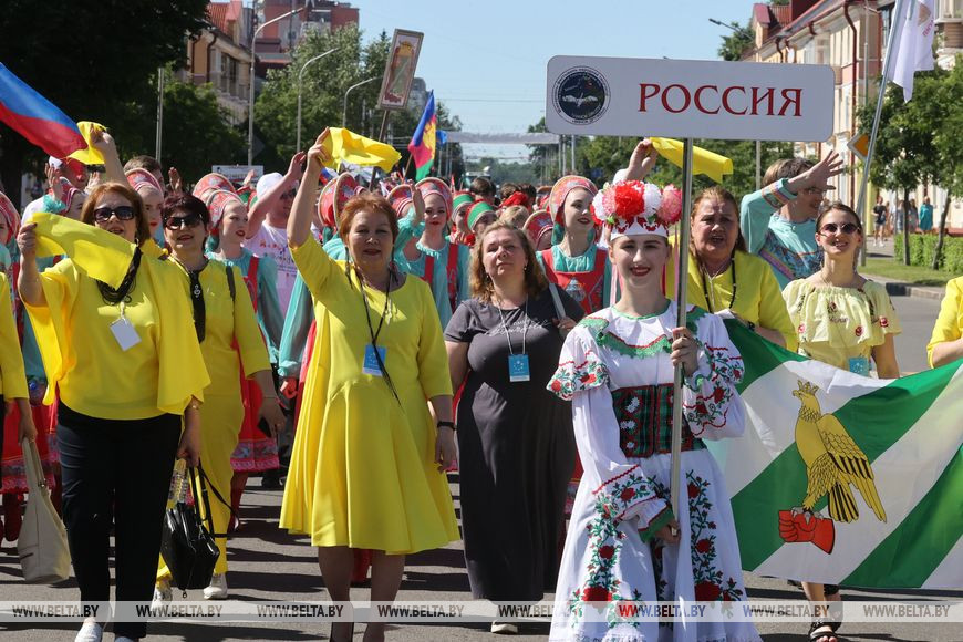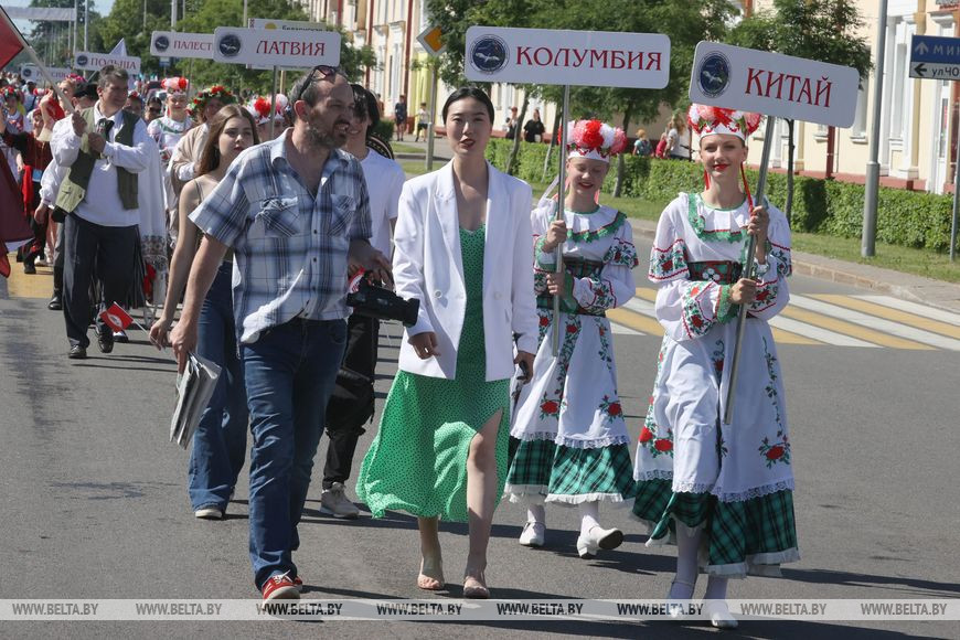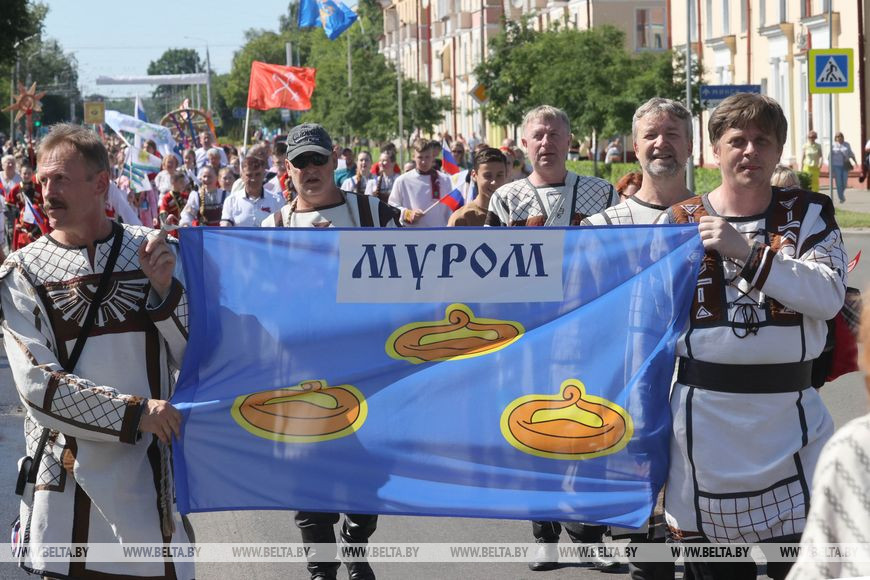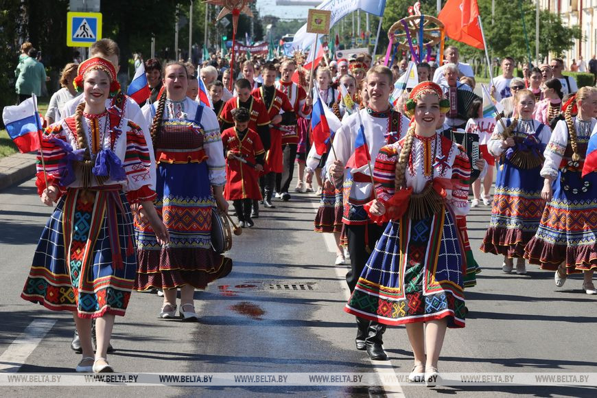 24 июня, Бобруйск /Корр. БЕЛТА/. Более 1,3 тыс. человек приняли участие в праздничном шествии XVI Международного фестиваля народного творчества "Венок дружбы" в Бобруйске, передает корреспондент БЕЛТА.