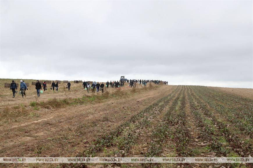 Прямо в поле прошла торжественная церемония открытия областного сельскохозяйственного трудового проекта. К работам приступили учащиеся из Могилевского машиностроительного колледжа, Могилевского индустриального колледжа и Могилевского экономического промышленно-технического колледжа.