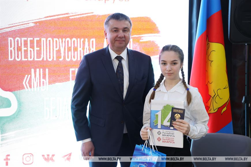 15 марта, Брест /Корр. БЕЛТА/. В Музее обороны Брестской крепости сегодня 21 талантливый школьник области в торжественной обстановке получил свой первый паспорт, передает корреспондент БЕЛТА.
