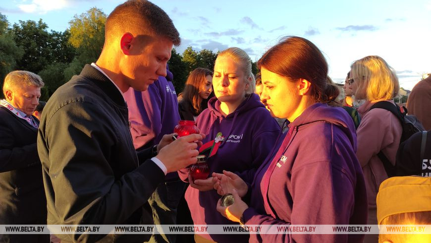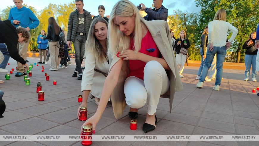 К акции обкома БРСМ присоединились представители "Белой Руси", профсоюзов, Союза женщин, Союза ветеранов войны в Афганистане, пионерской и других общественных организаций, работники предприятий Витебска и школьники. Даже просто прохожие направлялись в ближайшие магазины за лампадами и возвращались, чтобы синхронно зажечь огни памяти. Витебчанка Ирина Богданова пришла на площадь Победы вместе с 9-летним сыном Максимом. "Это скорбный день вообще для всех людей нашей страны и не только - 22 июня. Мы всегда приходим на такие мероприятия. Ведь важно знакомить с традициями и заниматься патриотическим воспитанием детей именно с ранних лет, - подчеркнула Ирина Богданова. - Воспитание нашего подрастающего поколения должно проходить именно в такой атмосфере: все вместе, дружно. И все должны помнить и чтить историю нашей страны".