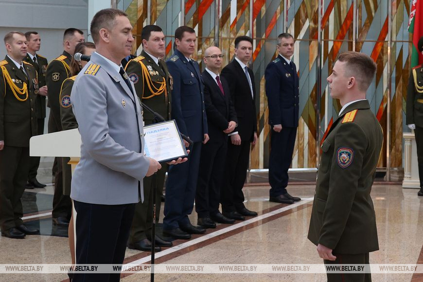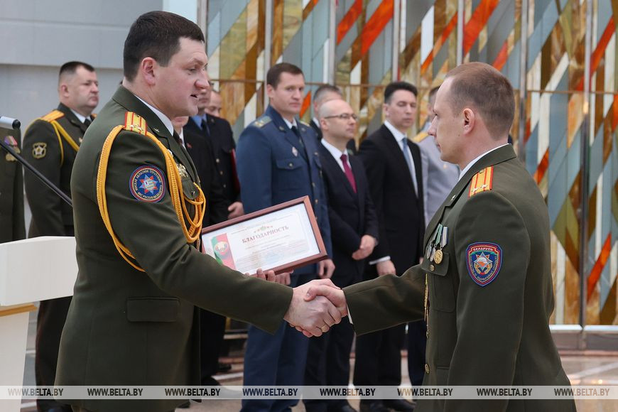 "Сегодня награждаем спасателей, которые отличились заслугами перед людьми и страной в прошлом году. Вместе с этим каждый сотрудник МЧС достоин похвалы, все проявляют мужество при спасении людей. В прошлом году мы выезжали на вызовы свыше 7 тыс. раз, спасли на пожарах более 270 человек, среди которых 30 детей", - рассказал Сергей Лапанович.